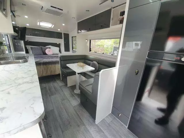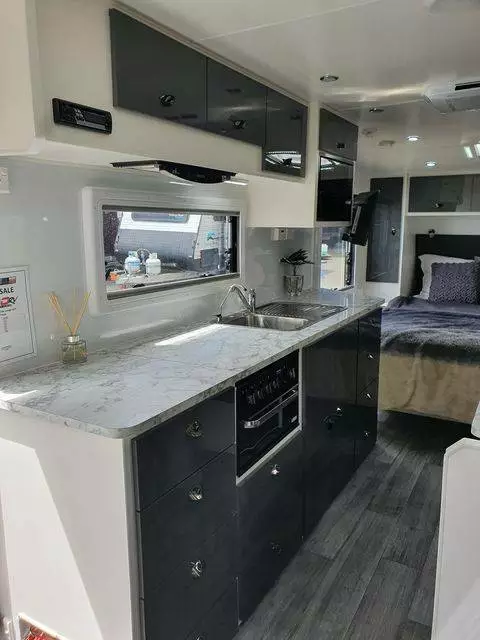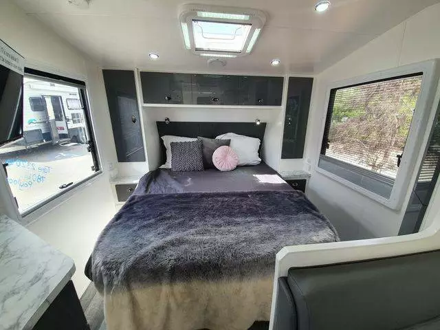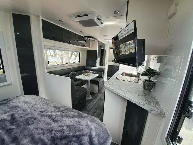 21.6ft club lounge plenty of storage massive kitchen with loads of bench space. Full height Pantry and larger fridge. Super light weight van with all the extras you need to hit the road comfortably This unit is available for a Pre Christmas delivery get in quick.